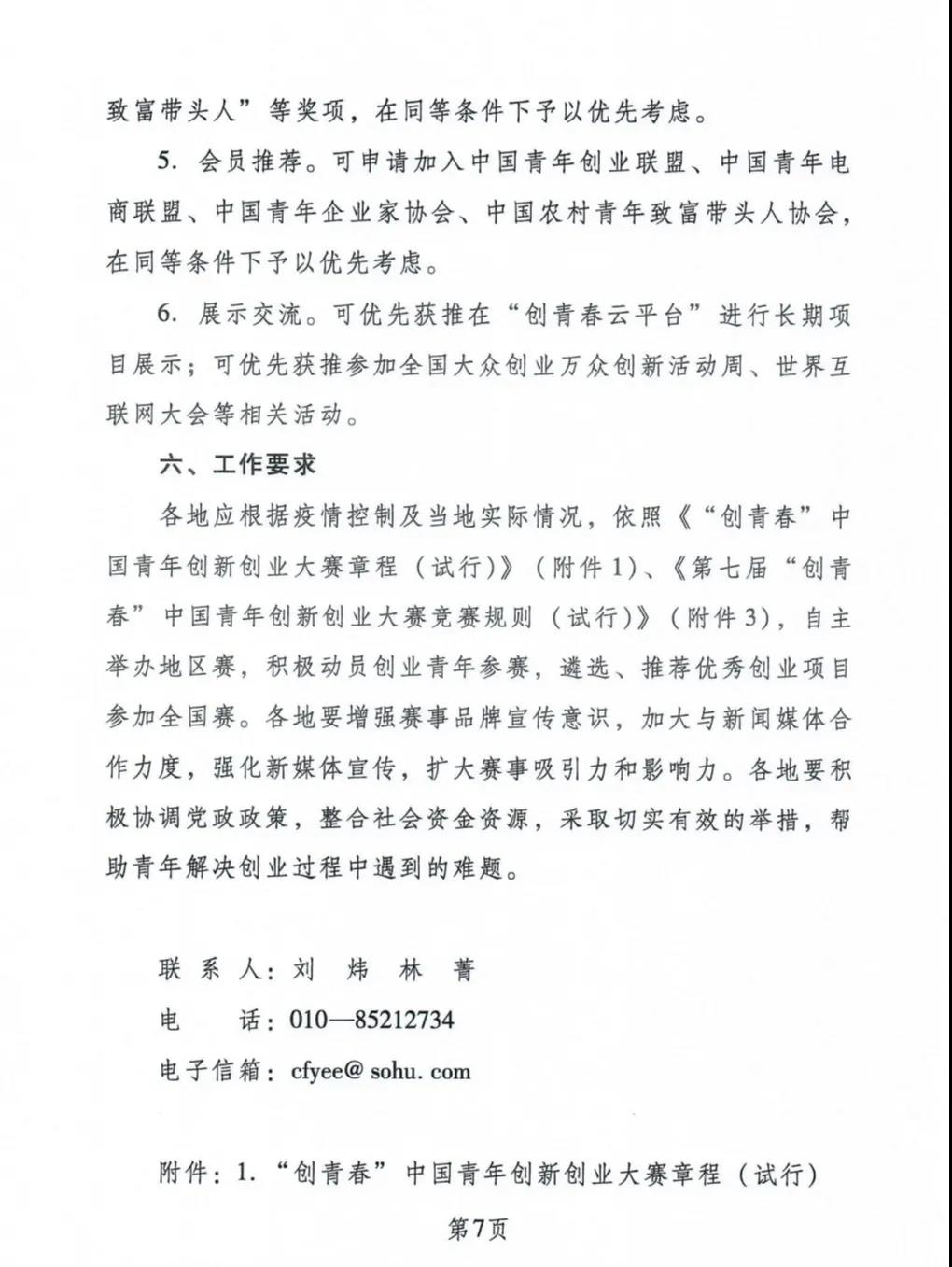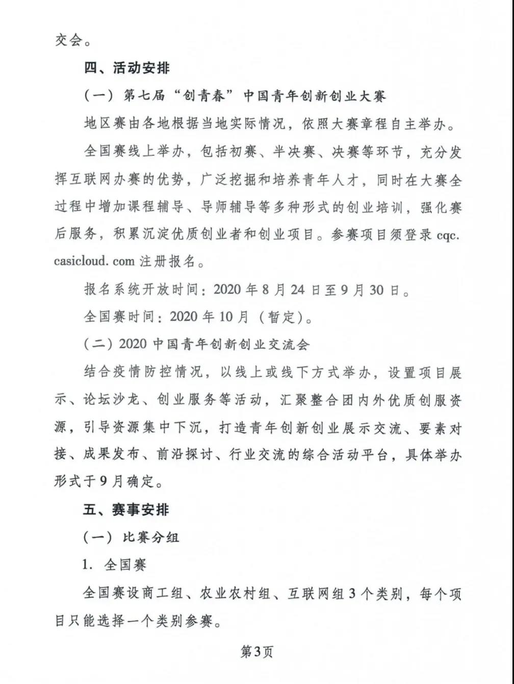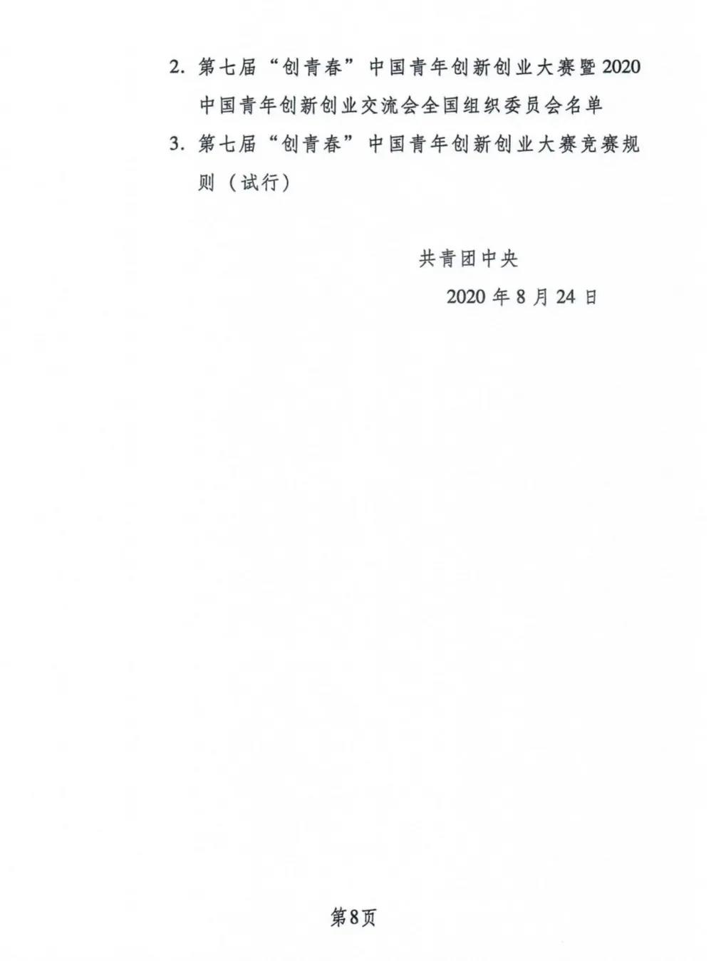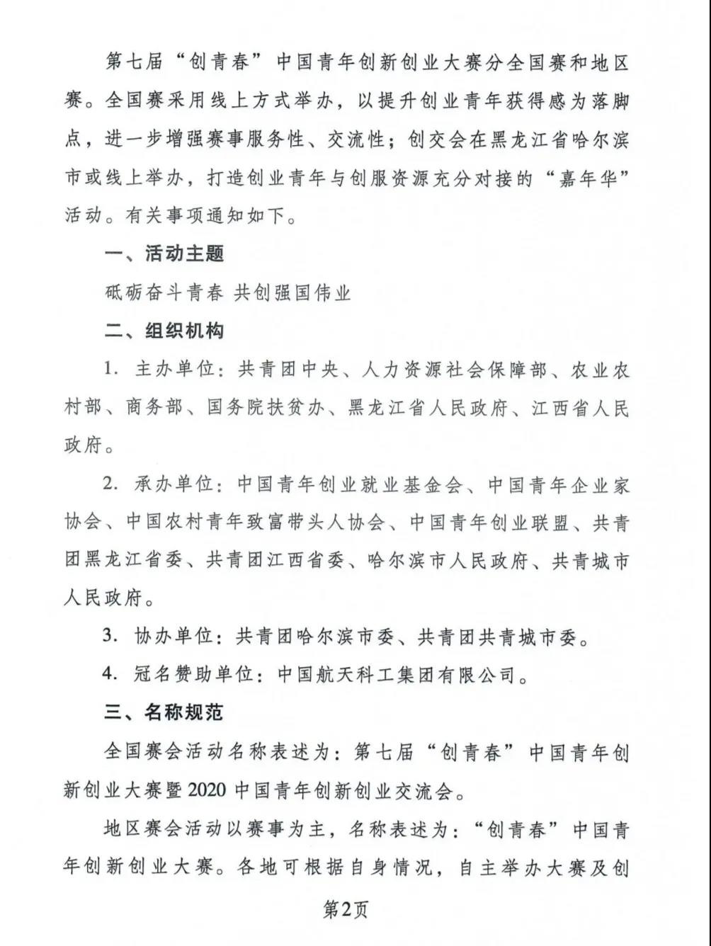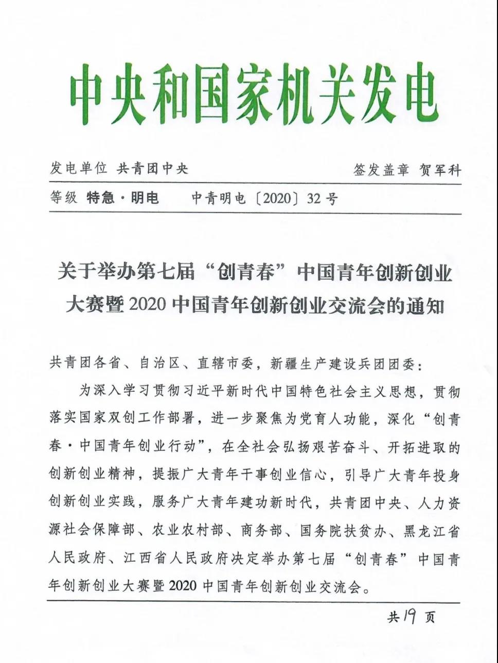 关于举办第七届“创青春”中国青年创新创业大赛暨2020中国青年创新创业交流会的通知