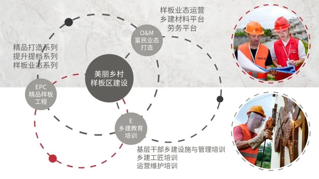 以E+EPC+O&M模式,全新定义乡建服务,贴合乡村建设需求,借鉴浙江经验、结合本土特征,提供集培训、设计、一体化建设与运管系统服务。以打造美丽乡村样板工程为支撑点,以开展乡建理论及实践培训为拔高点,以富民业态植入运营为纽带,带动当地村民致富增收,最终为服务地树立典型、打造样本,推动项目服务地乡村振兴工作走在区域前列。